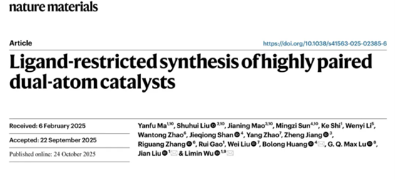The findings were published online on October 24 in the top-tier international journal Nature Materials, under the title “Ligand-restricted synthesis of highly paired dual-atom catalysts.”
