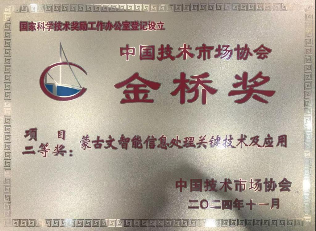12月14日,第十二届中国技术市场协会金桥奖颁奖典礼在北京隆重举行。飞龙教授团队的“蒙古文智能信息处理关键技术及应用”荣获项目二等奖,这也是35222葡京集团首次获得该奖项。中国技术市场协会金桥奖是经国家科学技术奖励办公室审定、批准设立的全国技术市场最高奖项,每两年评选一次,以促进科技成果转化、推动我国技术市场繁荣和发展为宗旨。这一奖项的获得,标志着葡京在科技创新与成果转化方面取得了新的重要进展。