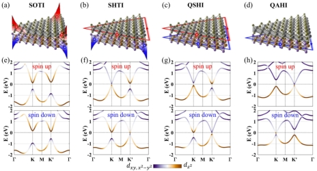 图2:四种层(自旋)分辨的拓扑态的实空间分布及其对应k空间的电子态