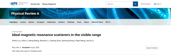 近日,葡京物理科学与技术学院青年教师李泽博士带领的原子分子光物理团队在磁光领域取得进展——首次揭示不对称双硅球颗粒在特定条件下可实现完美的磁光散射现象。相关研究成果以 “Ideal Magnetic Resonance Scatterers in the Visible Range” 为题,以快报(Letter)形式被原子分子光物理领域(AMO)国际著名期刊《Physical Review A》(该刊为 Nature 指数收录的学科卓越期刊)录用。